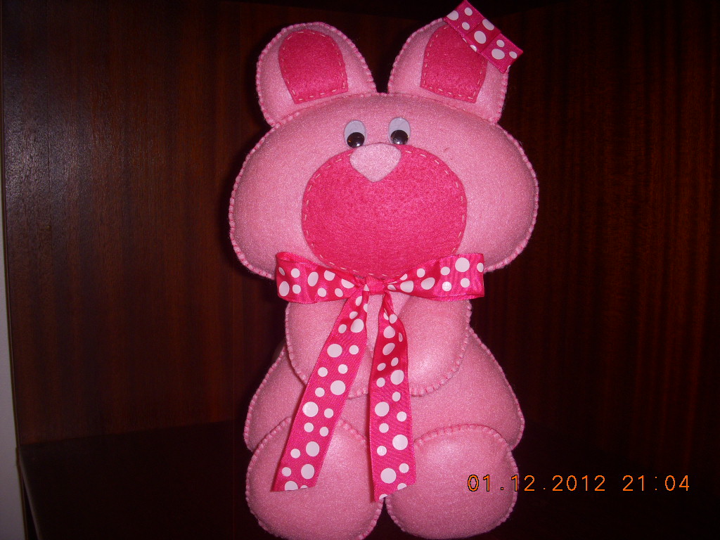 Aqui fica uma pequena doçura feita esta tarde, ursinho todo em feltro e feito á mão,depois deste vem uns quantos pois é a lembrançinha de b...
